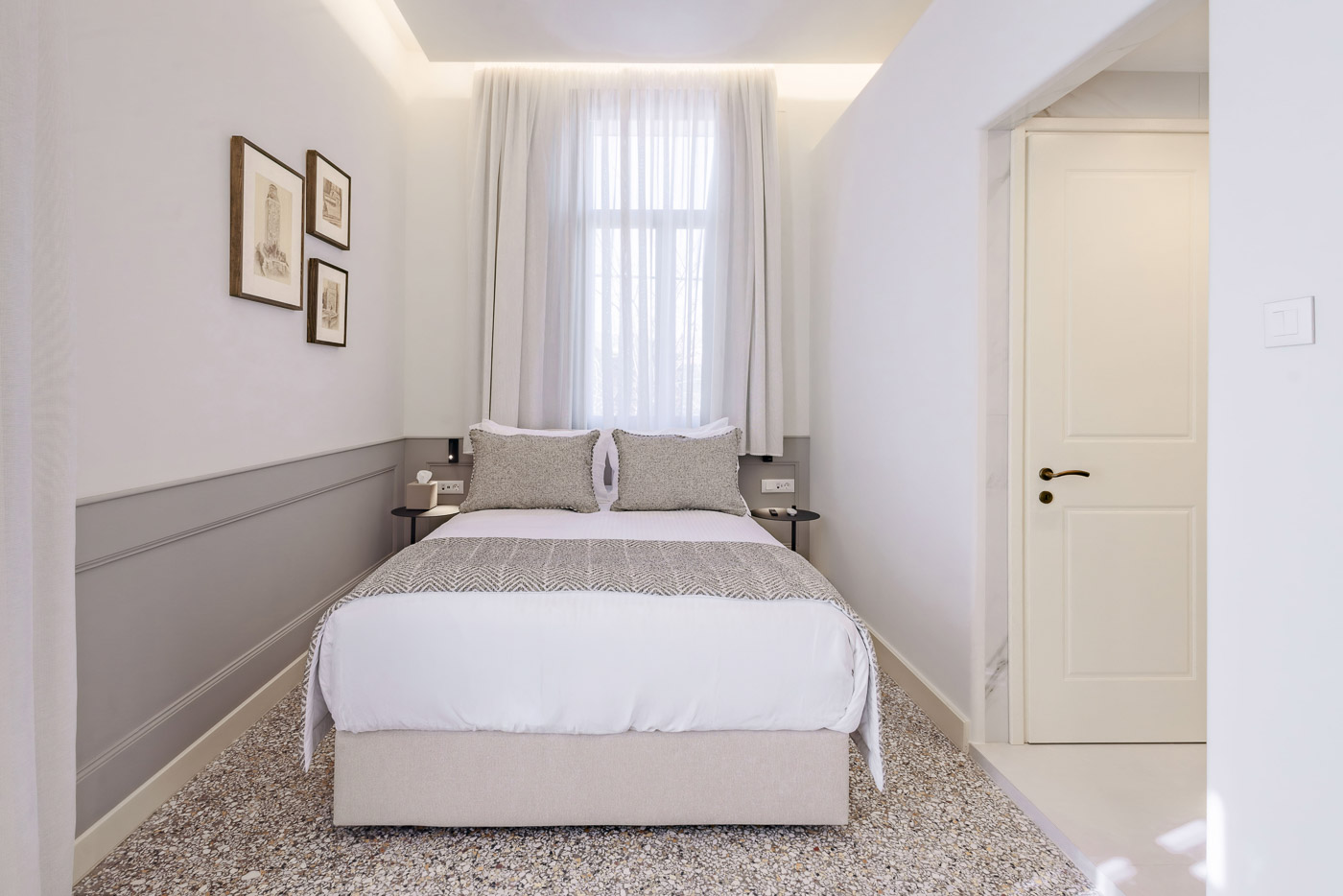 Safe depositMini BarAir ConditionHeatFanTowelsShowerAmenitiesWi FiSmart TV 55””Armchairs with table